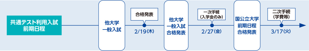 国公立や他私大の合格発表を確認してから入学手続ができるスケジュール設定で、経済的な負担を軽減できます。