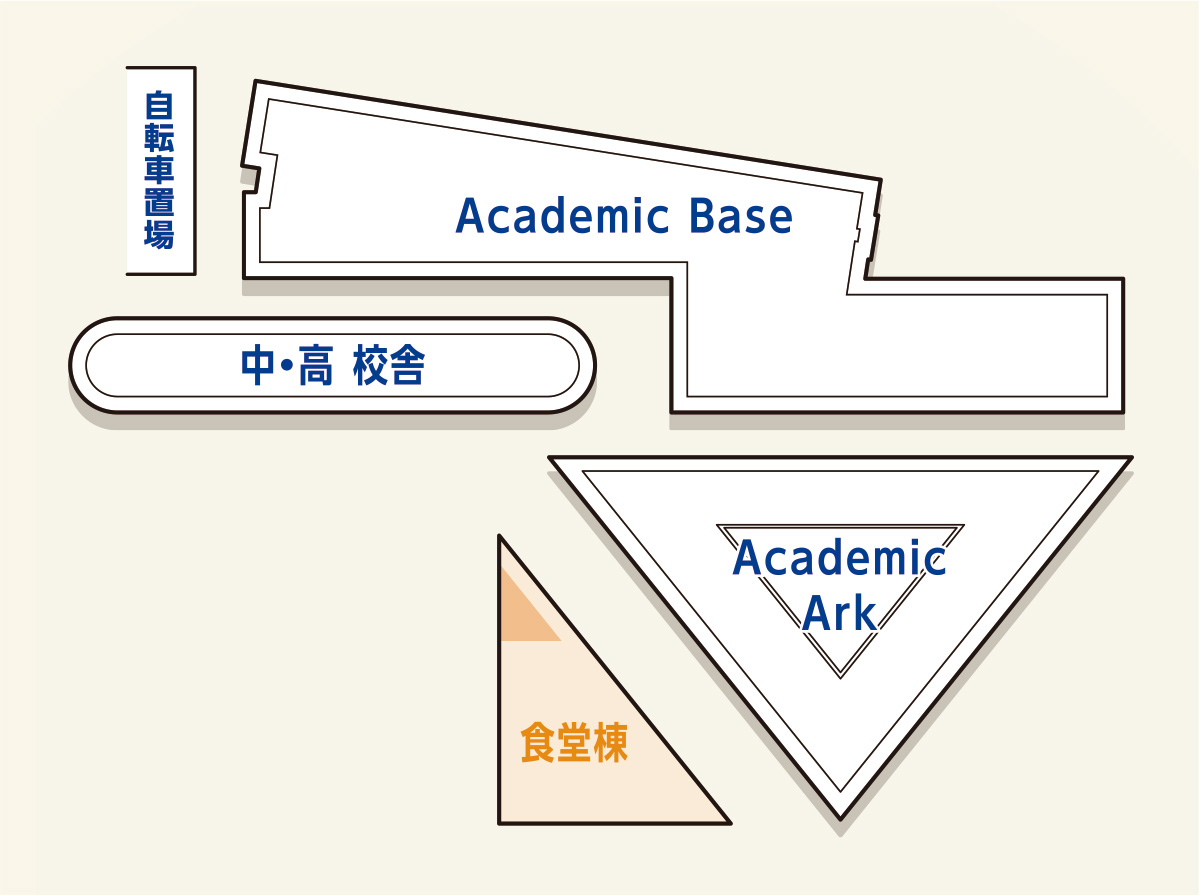 自転車で来学される場合は専用ルートに従って自転車置場をご利用ください。