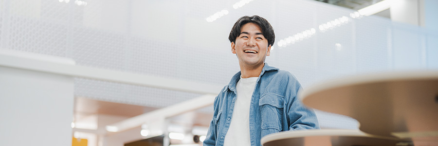 就職活動で最も力を入れたことは自己分析です。学内セミナーを活用しながら、就職キャリア支援課にも通い、エントリーシートの添削や模擬面接を通して、自分の強みや志望動機を言語化する練習を重ねました。就職キャリアのスタッフの方々は、悩んだときにはいつでも相談できる存在。親身になって一緒に考えてくれるので、とても心強かったです。何度も練習を重ねるうちに、面接では自然と笑顔で話せるようになり、本番は自信を持って臨むことができました。